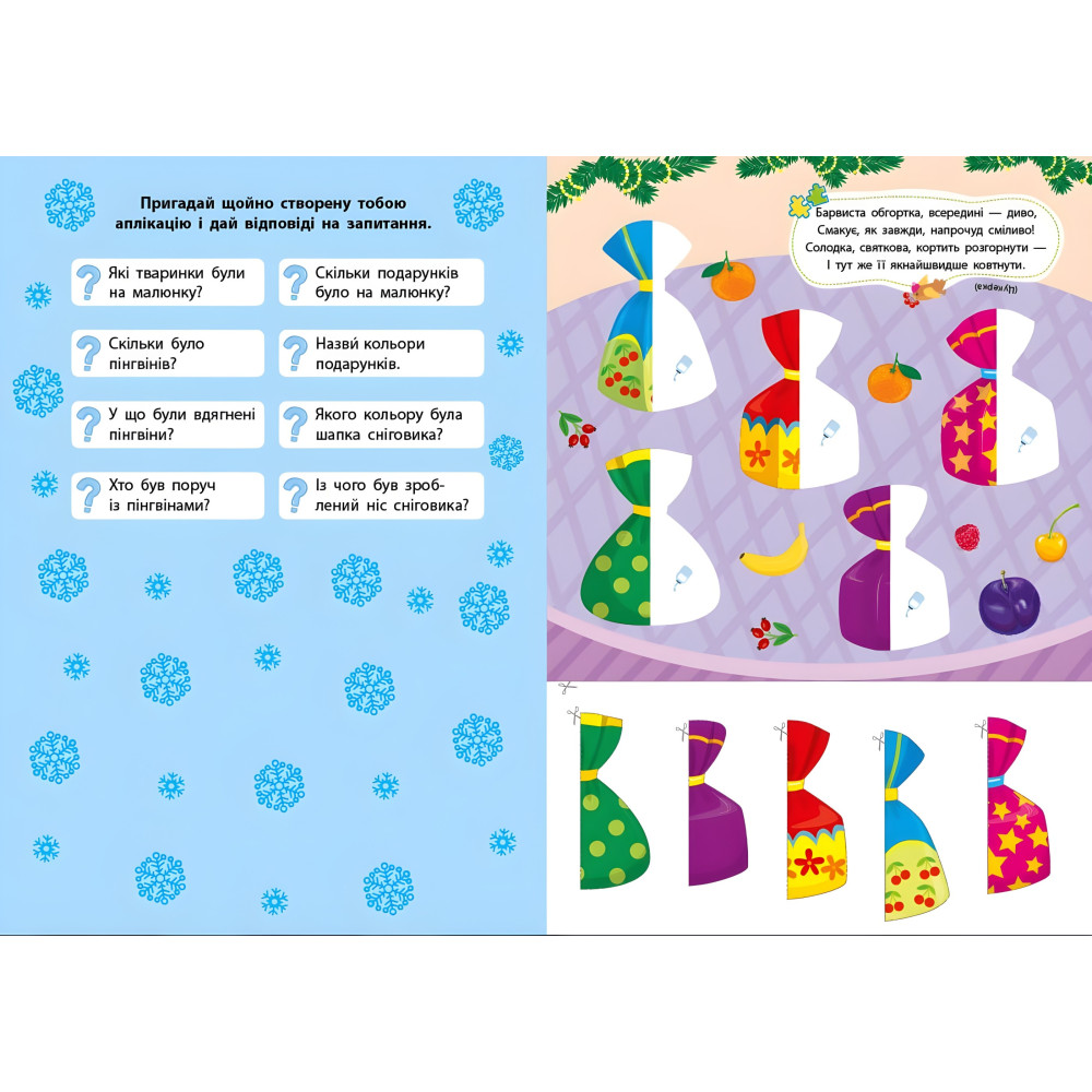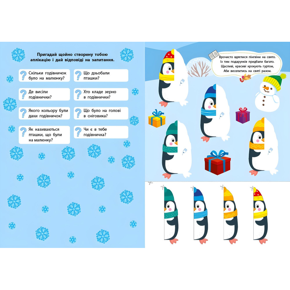**«Зимові аплікації. Пінгвін»** — це чудова розвивальна книга для дитячої творчості, що допоможе створити справжні зимові шедеври власними руками! Малюки зможуть вирізати, клеїти, прикрашати сторінки та створювати чарівні аплікації із **пінгвінами, ялинками, сніжинками та подарунками**. Книга сприяє розвитку **дрібної моторики, уваги, фантазії, логічного мислення**, а також формує інтерес до творчої діяльності. Ідеальний варіант **для зимових занять, новорічних свят і підготовки до Різдва** вдома чи в дитячому садочку.