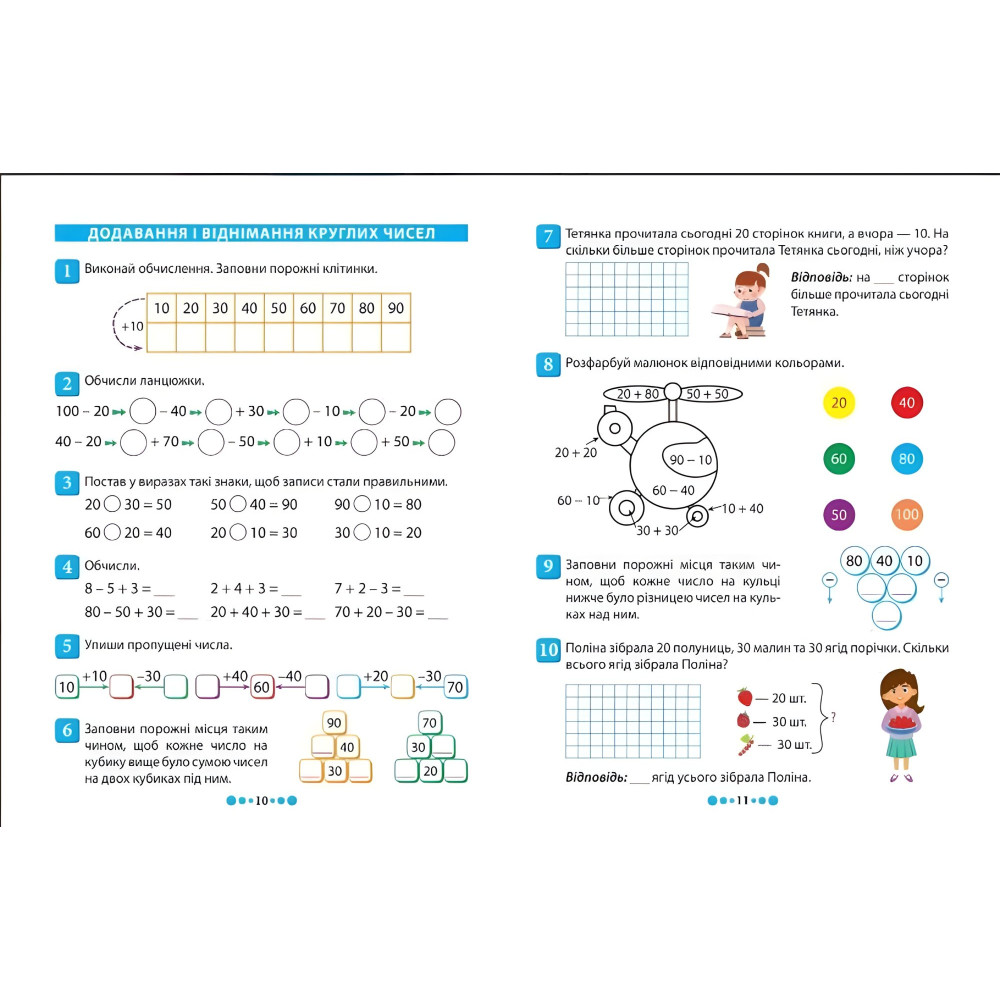 Зошит-практикум містить велику кількість вправ і задач, а також математичну гру. Посібник призначений для удосконалення обчислювальних навичок дитини, умінь розрізняти геометричні фігури за істотними ознаками, креслити, оперувати величинами й розв'язувати різні види задач.