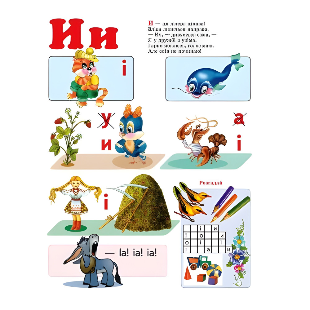 Букварик ознайомить дітей з алфавітом, навчить читати по складах, збільшить словниковий запас та сприятиме розвитку мовлення. Оригінальна авторська методика забезпечить швидкий, легкий та результативний процес навчання. На сторінках видання дитина знайде цікаві завдання, веселі вірші, барвисті малюнки.