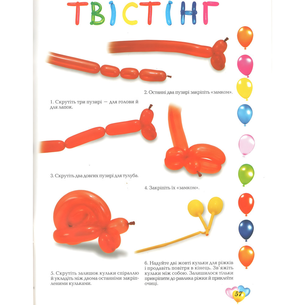 Кожний з нас, напевно, не раз заворожено спостерігав, як клоун за лічені секунди перетворює довгі вузькі кульки на дивних і милих звірят. Виявляється, навчитися цьому веселому мистецтву нескладно, потрібно тільки дотримуватися правил та поетапних інструкцій, що наводяться в нашій книзі Досить лише трохи потренуватися, і у ваших руках почнуть оживати звірята та квітнути яскраві квіти. Мистецтво зі скручування фігурок з куль називається твістінгом. Займатися твісгінгом можна всією родиною. Це заняття не тільки розвиває творчі здібності, окомір, координацію рухів, але й об'єднує членів родини, допомагає налагодити контакт дорослих і дітей.