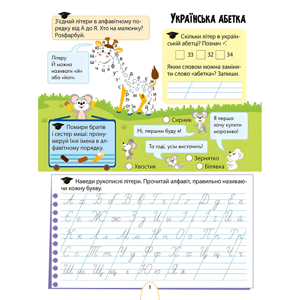 ВІДПОВІДАЄ КОНЦЕПЦІЇ НОВОЇ УКРАЇНСЬКОЇ ШКОЛИ ТА СУЧАСНИМ ВИМОГАМ. Непосидючі герої зошита — миша та жирафа — не можуть ні дня без пригод. Вони пізнають світ і разом з тим навчаються. Із веселими друзями ваш школяр швидко та залюбки оновить у пам'яті шкільну програму та опанує нові знання. Миша та жирафа надаватимуть йому підказки з найважливіших та найскладніших питань і доступно пояснюватимуть нові теми. Посібник містить усі необхідні теми з предмета в ігрових завданнях, завдяки чому ваш школяр точно не занудьгує. "Цікаве навчання" — це: 48 яскравих сторінок захопливих та пізнавальних завдань, нові знання, легкий спосіб подачі матеріалу. Зошит можна використовувати як на уроках, так і для самостійної роботи вдома.