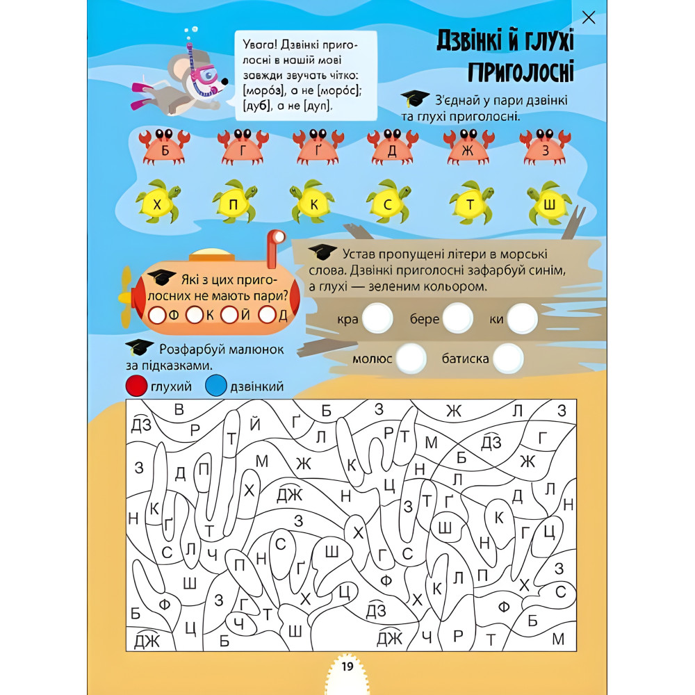 Непосидючі герої зошита — миша та жирафа — не можуть ні дня без пригод. Вони пізнають світ і разом з тим навчаються. Із веселими друзями ваш школяр швидко та залюбки оновить у пам'яті шкільну програму та опанує нові знання. Миша та жирафа надаватимуть йому підказки з найважливіших та найскладніших питань і доступно пояснюватимуть нові теми. Посібник містить усі необхідні теми з предмета в ігрових завданнях, завдяки чому ваш школяр точно не занудьгує. «Цікаве навчання» — це: 48 яскравих сторінок пізнавальних завдань, нові знання, легкий спосіб подачі матеріалу. Зошит можна використовувати як на уроках, так і для самостійної роботи вдома. Чому варто придбати: Посібник охоплює всі необхідні теми та методичні рекомендації, згідно з програмою НУШ. Вправи спрямовані на відпрацювання та закріплення набутих під час навчання навичок. У зошитах цієї серії застосований ігровий підхід до навчання: школярик буде одночасно відпрацьовувати теми зі шкільної програми та малювати, шукати вихід з лабіринту, розгадувати логічні загадки та шифрувальники.