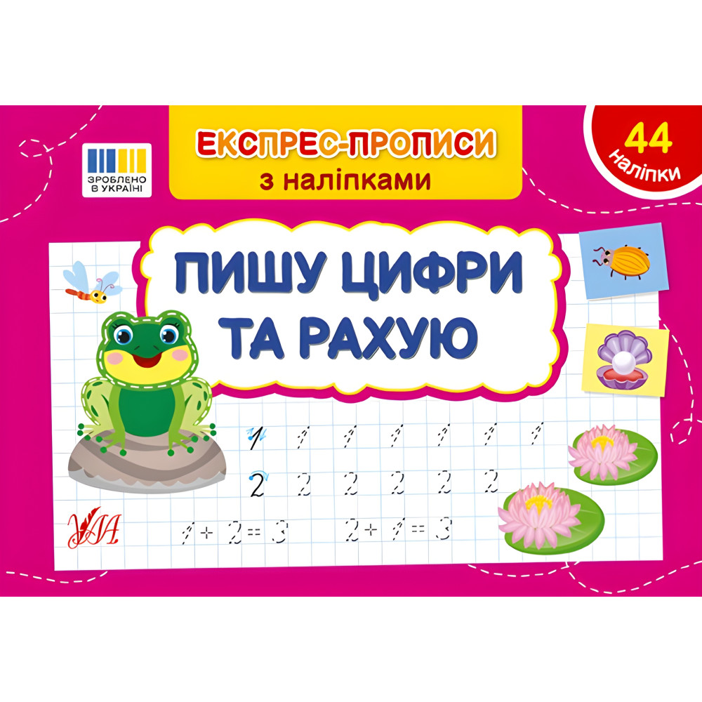 Із книжкою «Пишу цифри та рахую» дитина наводитиме малюнки по пунктиру, лічитиме їх, доклеюватиме потрібну кількість зображень, навчиться писати цифри й знаки по клітинках і потренується обчислювати прості вирази. Робота з виданням допоможе покращити дрібну моторику пальців рук, розвине увагу й пам’ять, поліпшить навички лічби та обчислення, виховає акуратність та посидючість під час виконання завдань.