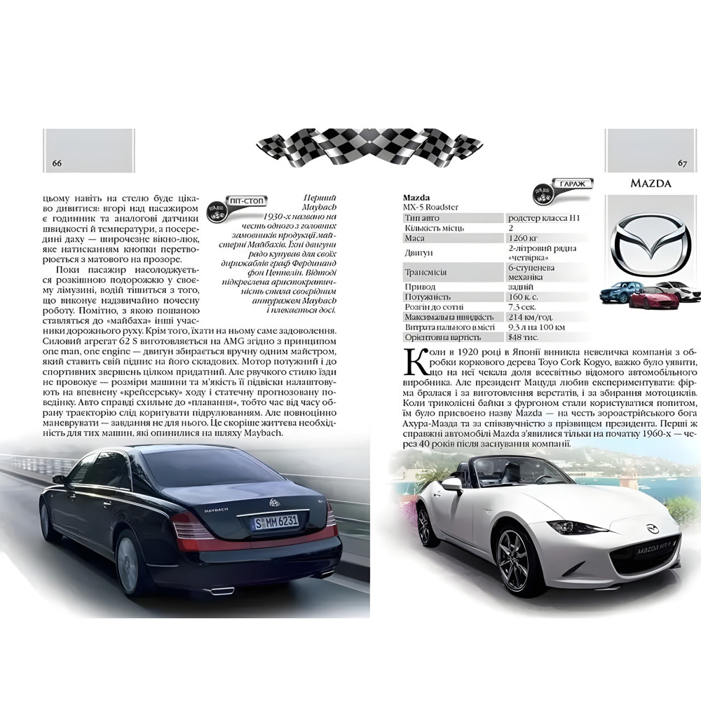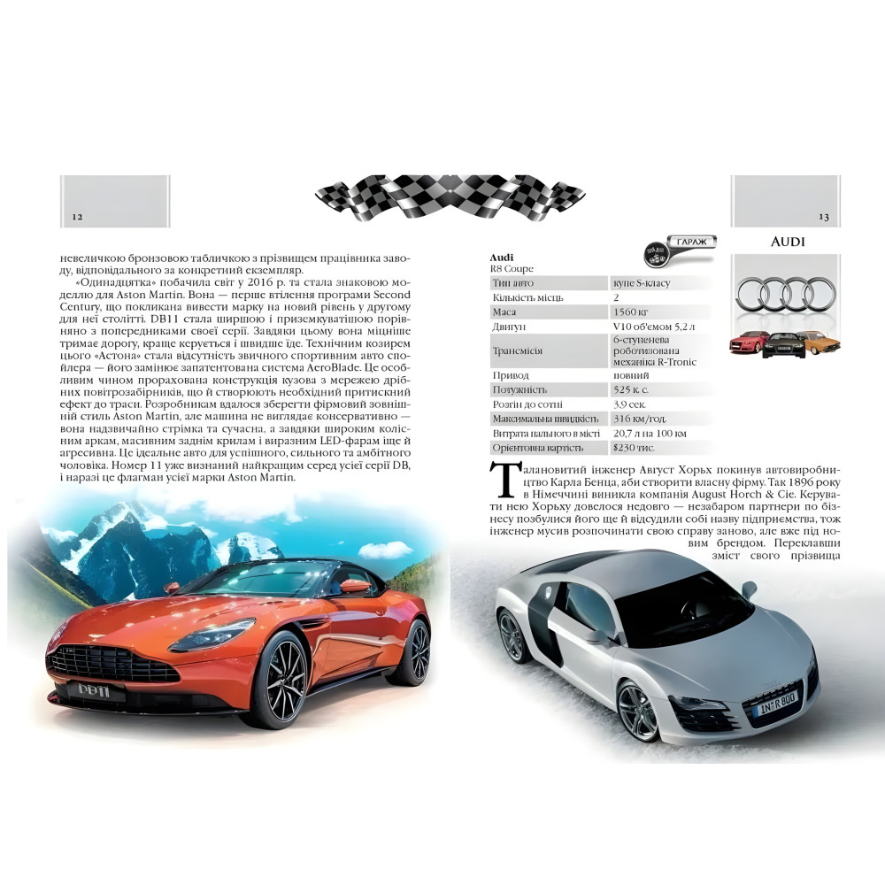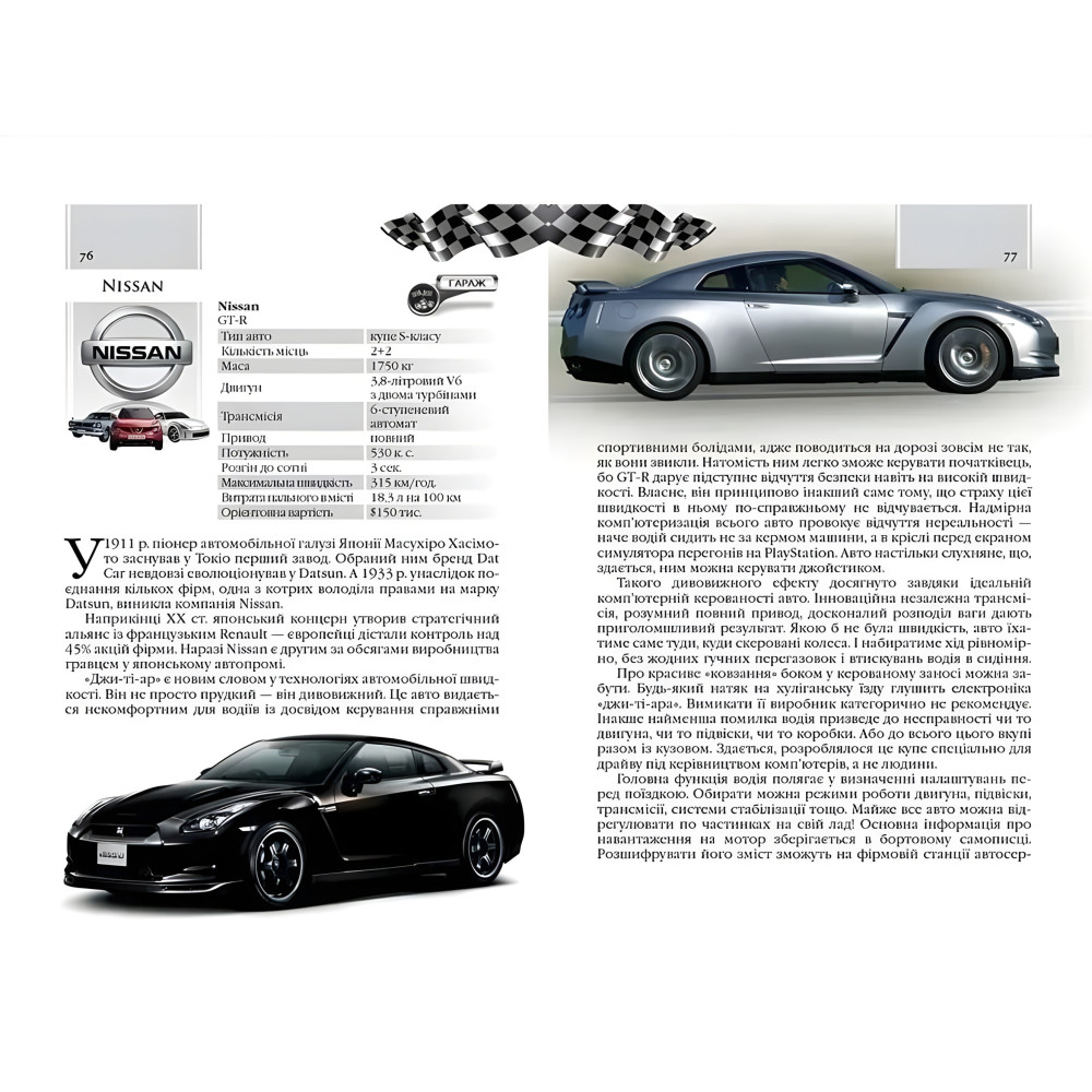 Автомобіль, здавалося б, є всього лише механічним транспортним засобом, покликаним зробити життя людини комфортнішим. Але він вже давно став чимось більшим... У найдосконаліші взірці технічної думки та дизайнерської майстерності, можна по-справжньому закохатися.Тридцять найліпших машин сучасності змагатимуться за призові місця в серцях читачів. На сторінках книги представлені не просто автомобілі — це втілені в металі мрії більшості мешканців планети Земля.Історія виникнення найуславленіших світових автобрендів, технічні властивості найдорожчих суперкарів сучасності, живі легенди автомобільної промисловості та найкращі зразки тюнінгу — цю складну інформацію викладено простою та зрозумілою мовою, а також доповнено яскравими ілюстраціями.