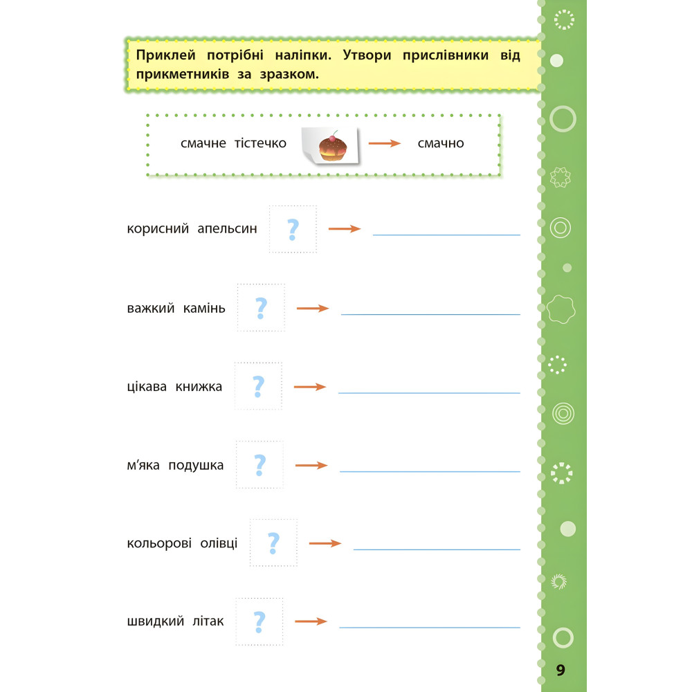 Видання охоплює матеріал 4 класу з предмета «Українська мова» і відповідає вимогам освітніх програм мовно-літературної галузі Нової української школи. Ігрова форма завдань, 100 наліпок і яскраві ілюстрації допоможуть легко сформувати ключові компетентності дитини та закріпити набуті в школі знання.