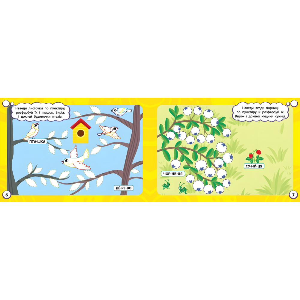 Із книжкою «Розмальовки й аплікації наліпками» дитина цікаво та з користю проведе час, адже наводитиме по пунктиру різні предмети, розфарбовуватиме об’єкти, а також вирізатиме наліпки й творчо доповнюватиме ними малюнки. Разом із тим малюк потренується читати по складах прості слова. Робота з виданням допоможе покращити дрібну моторику пальців рук, розвине увагу та уяву, потренує пам’ять і посидючість, виховає старанність і акуратність під час виконання завдань. Видання призначене для дітей дошкільного віку та їхніх батьків