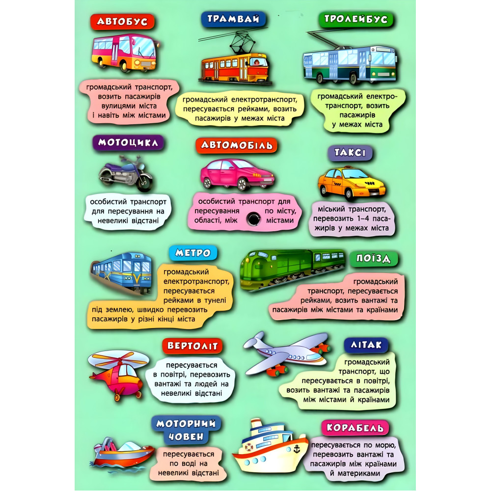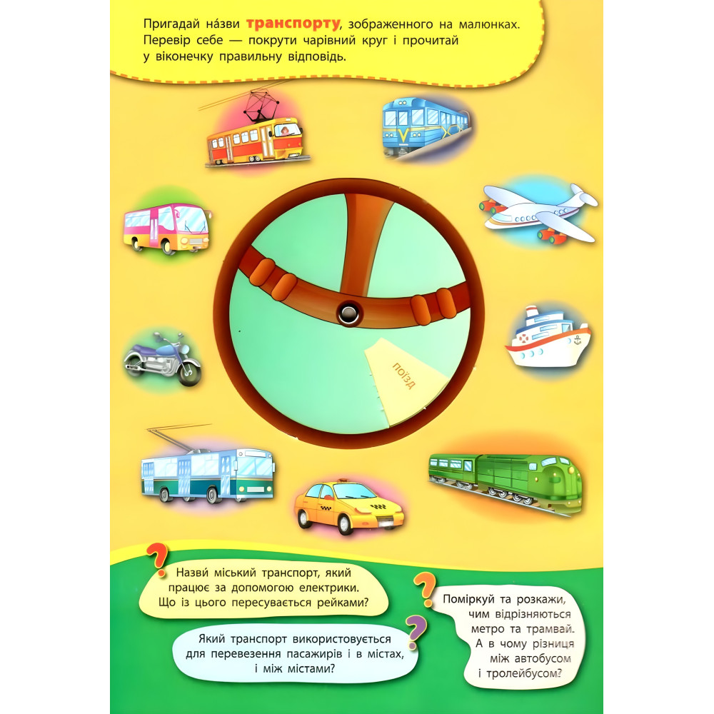 Серія «Книга-тренажер» допоможе малюкам вивчити українську та англійську абетки, опанувати навички лічби, познайомитися з кольорами й формами, засвоїти базові правила дорожнього руху, етикету, безпеки вдома й на вулиці, навчитися орієнтуватися в часі, дізнатися багато цікавого про світ тварин, професії, транспорт та корисні машини. Захопливі завдання дозволять закріпити здобуті знання, а гра з рухомими колами сприятиме розвитку не лише уваги, уяви та логічного мислення, а й дрібної моторики.