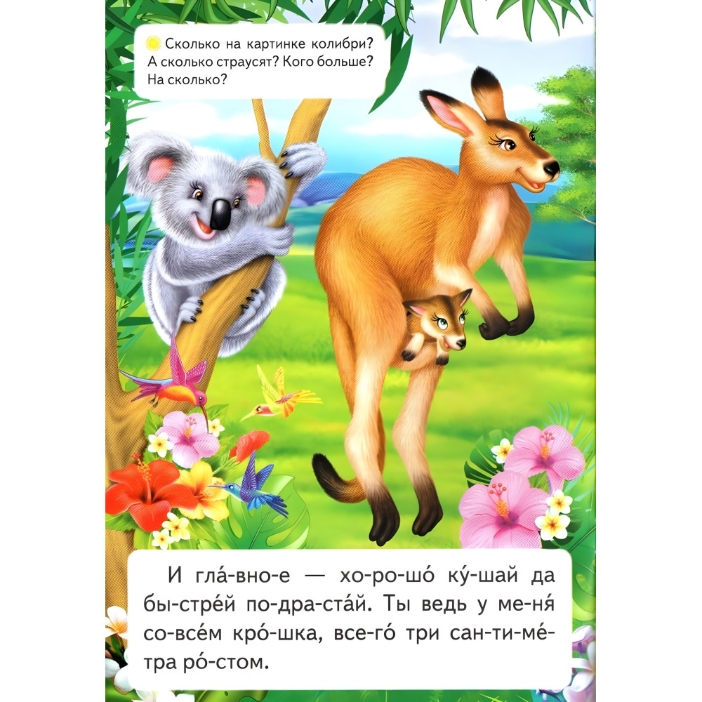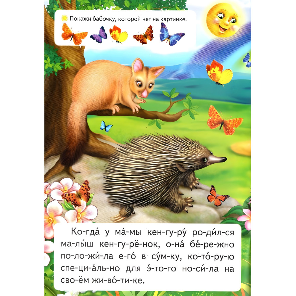 Ця дивовижна історія сталася у далекій Австралії. Де знаходиться ця Австралія, доведеться якось розповісти малюкові 3-4 років. А може, досить сказати, що в якійсь казковій країні, далеко-далеко, оточеній теплими океанами живуть казкові тварини. Вони незвичайні – у сумках на животі носять своїх малюків! Називаються кенгуру та вомбат. А ще в цій країні казкові різнокольорові ліси та величезні-величезні бабочки небаченої краси! І ось коли ваш малюк помчить у своїй уяві в цю саму казкову країну Австралію, і гонитиметься разом з маленьким кенгуренком за надзвичайно красивим метеликом, а потім познайомиться з гарним вомбатом, станеться диво. Він почне читати по складах! Звичайно, тут дуже допоможе спеціально підготовлений і «поданий» у книзі текст. Але чорні, великі літери в словах, розбитих на склади – лише помічники захоплюючого та яскравого сюжету, завдяки якому уява вашого малюка у далекій казковій Австралії. Там, де треба повертати кенгуренка до мами, і де літають різнокольорові хуртовини, і де гуляє гарний вомбат. А навички читання... А що, навички читання? Вони відмінно розвиваються - із задоволенням та бажанням!