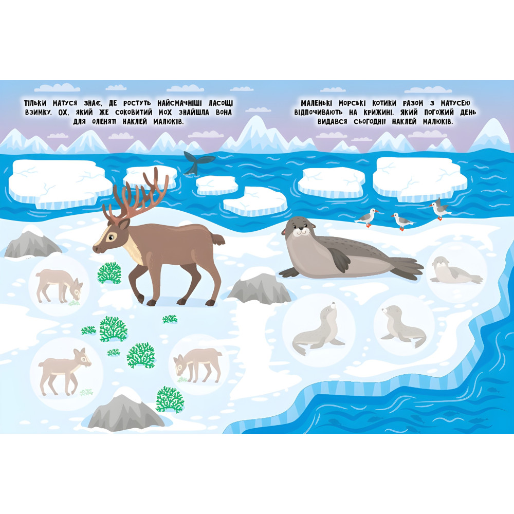Ця книжка познайомить дітей з тваринами Північного полюсу та їхніми дитинчатами. Вона допоможе запам’ятати їхні назви та дізнатися, що вони люблять робити. Великі наліпки урізноманітнять пізнавальний процес, перетворивши його на цікаву гру. Книжка допоможе розширити кругозір малюка й розвинути дрібну моторику пальців рук.