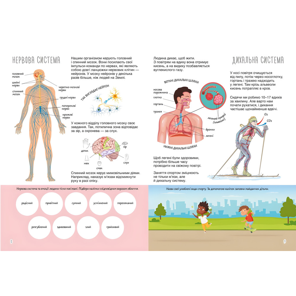Доступно рассказать ребенку о строении нашего тела - задача сложная, но только на первый взгляд. Ви убедитесь в этом, когда прочитайте вместе с малышами Эту книгу. В ней НЕ только подано описания внутренних органов человека, но и объясняется, как они работают. В то же время юный почемучка узнает, Какие продукты полезен и зачем придерживаться режима дня. Раскрашивая рисунки и дополняющие их 130 Красочная наклейками, он легко запомнит все, что услышал и прочитав.