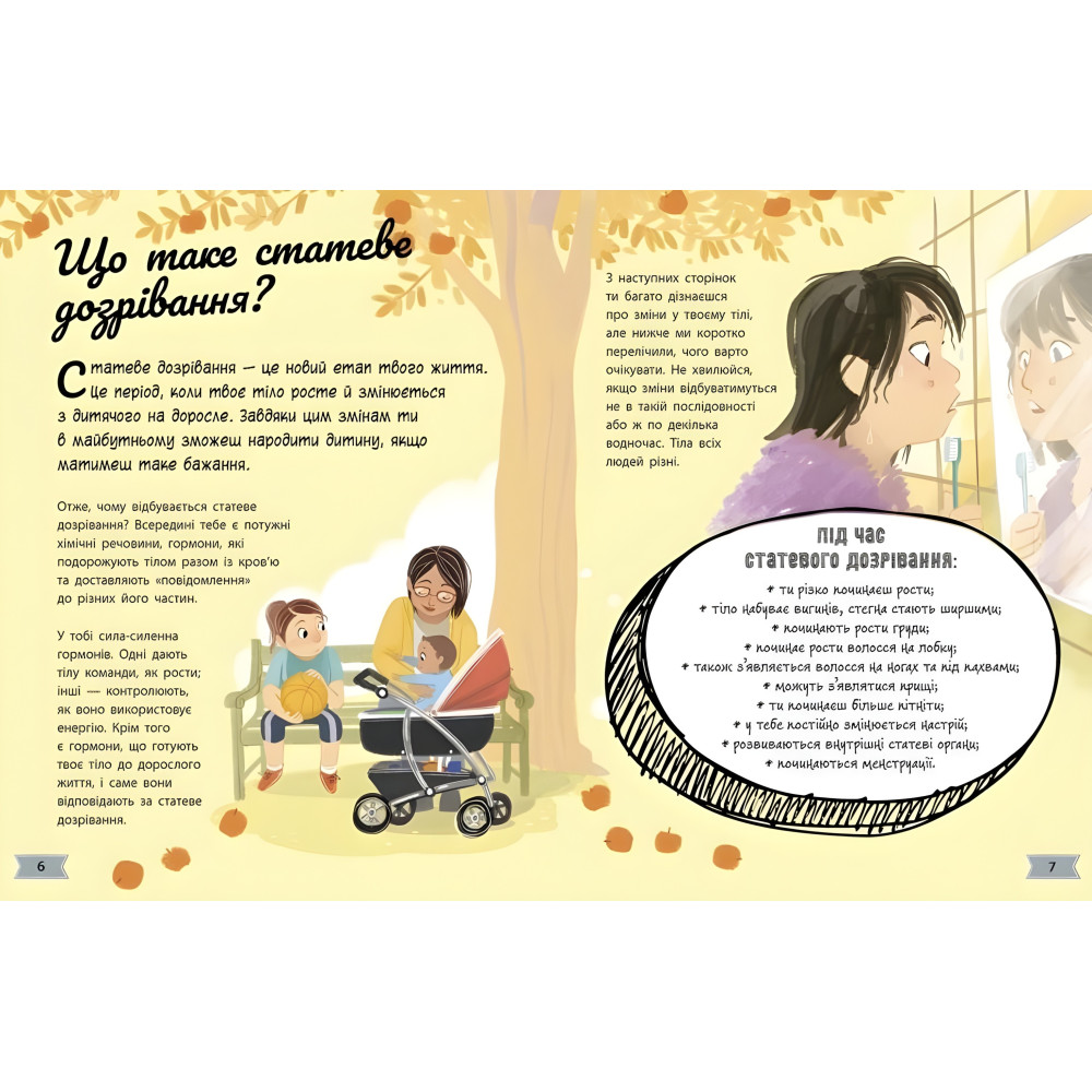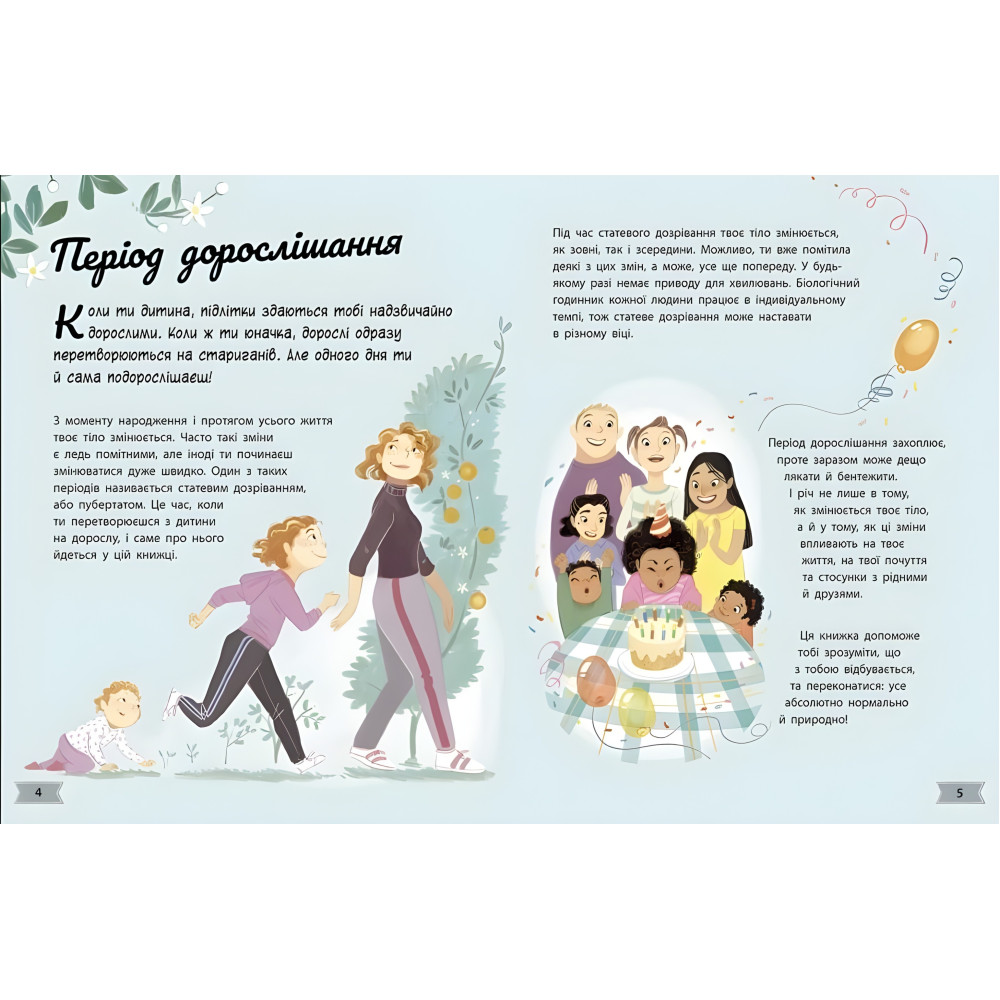 «Путівник по дорослішанню» від Аніти Ганері розвіє багато твоїх страхів та надасть тобі упевненості на складному шляху перетворення з дівчинки на жінку. Ти з'ясуєш, що відбувається з твоїм тілом, як зовні, так і зсередини: чому збільшуються груди та з’являється волосся на тілі, що таке менструація і чому твій настрій вмить змінюється від «я всіх вас люблю» до «не хочу нікого бачити»? Дізнавайся більше про саму себе — і сміливо розпочинай новий цікавий етап свого життя!