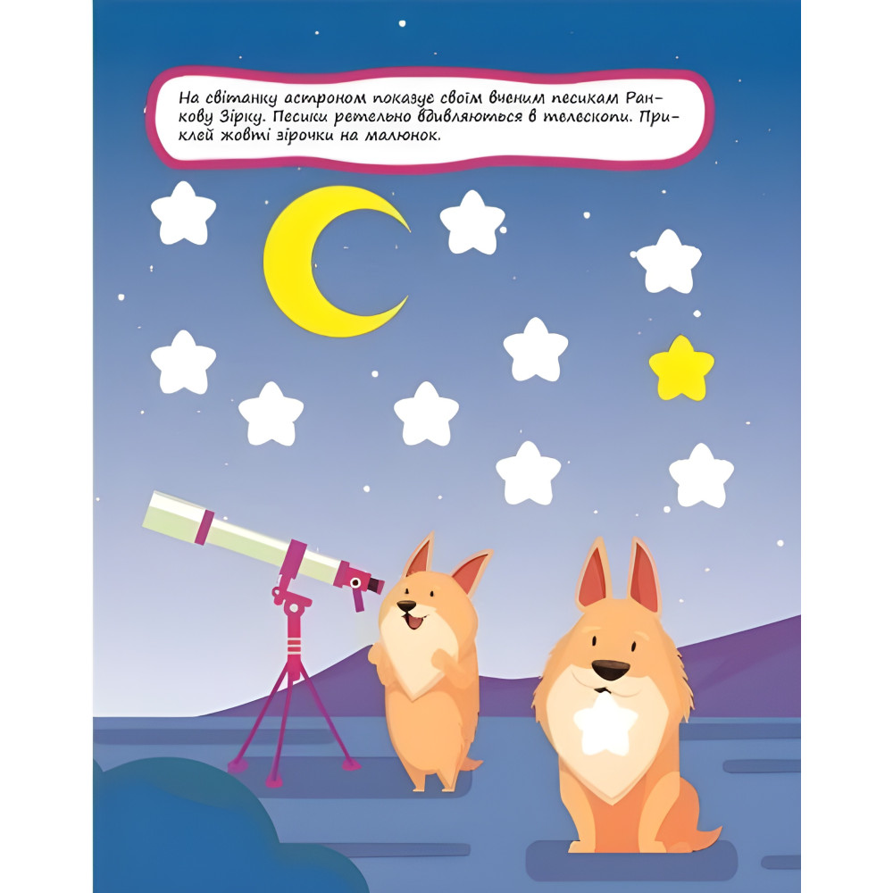 Книжка «Зірочки» призначена для творчих, активних діточок. Доповнюючи кумедні малюнки наліпками-зірочками, ваш малюк не тільки отримає задоволення від захопливої гри, а ще й проведе час із користю. Адже ігри з наліпками розвивають просторове та логічне мислення, зорове сприйняття, посидючість, а також тренують дрібну моторику. Якщо малюк не зможе охайно приклеїти зірочку одразу – не проблема, адже наші наліпки – багаторазові!