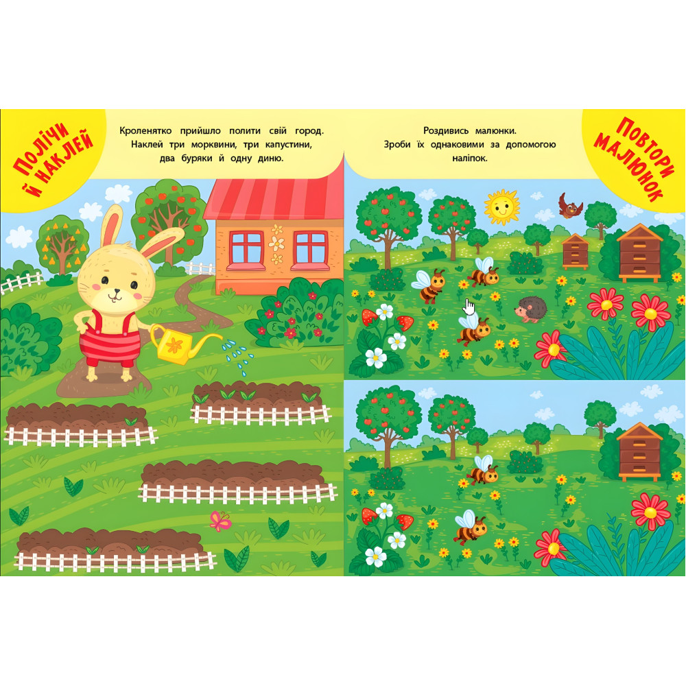 Ця книжка стане гарним товаришем для вашого малюка, адже з її героєм лисенятком дитина зможе подорожувати сторінками й виконувати різні ігрові завдання за допомогою наліпок: робити однаковими малюнки, доповнювати чи відновлювати пейзажі за підказками, грати з кольорами й цифрами, мандрувати лабіринтом тощо. Видання призначене для спільної роботи дорослих з дітьми дошкільного віку.
