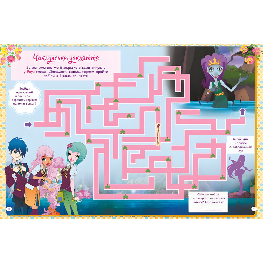 Роуз Попелюшка запрошує до Країни Казок! Вигадуй разом з командою Роуз нові магічні формули! Створюй у диво-лабораторії чарівне зілля! Дізнавайся про нові задачі команди Королівської Академії і вирішуй їх, думаючи, граючись, фантазуючи і використовуючи наліпки! Захоплива пригода триває...