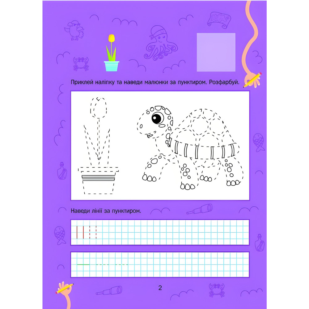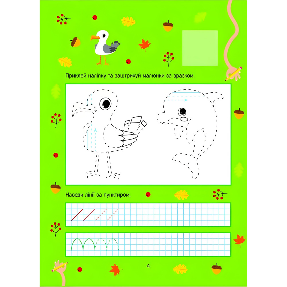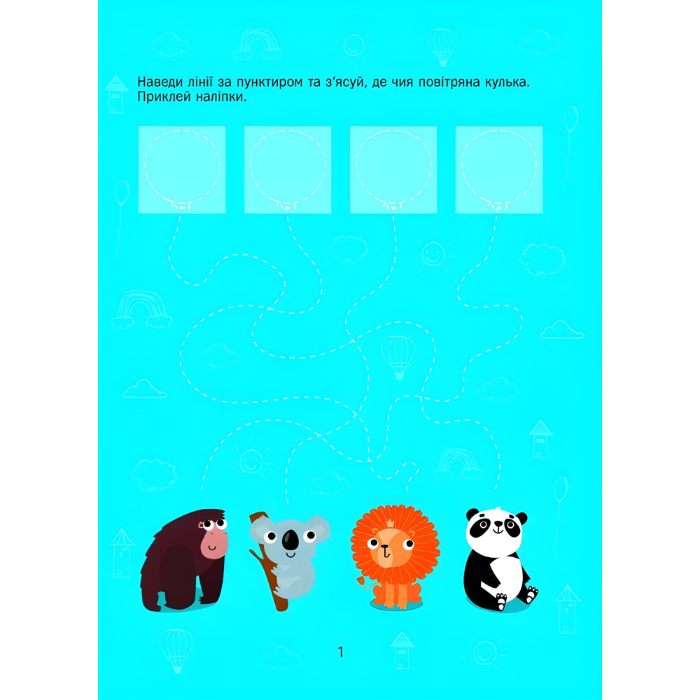 Із цією книжкою маленькі розумахи креслитимуть прості лінії, проходитимуть лабіринти й навчаться орієнтуватися у просторі. Цікаві завдання та яскраві малюнки допоможуть малечі розвинути уяву та асоціативну пам’ять, а разом із наліпками дітлахи потренують дрібну моторику. Веселих занять!