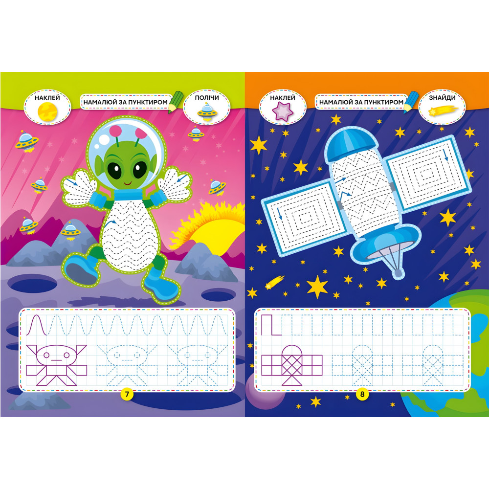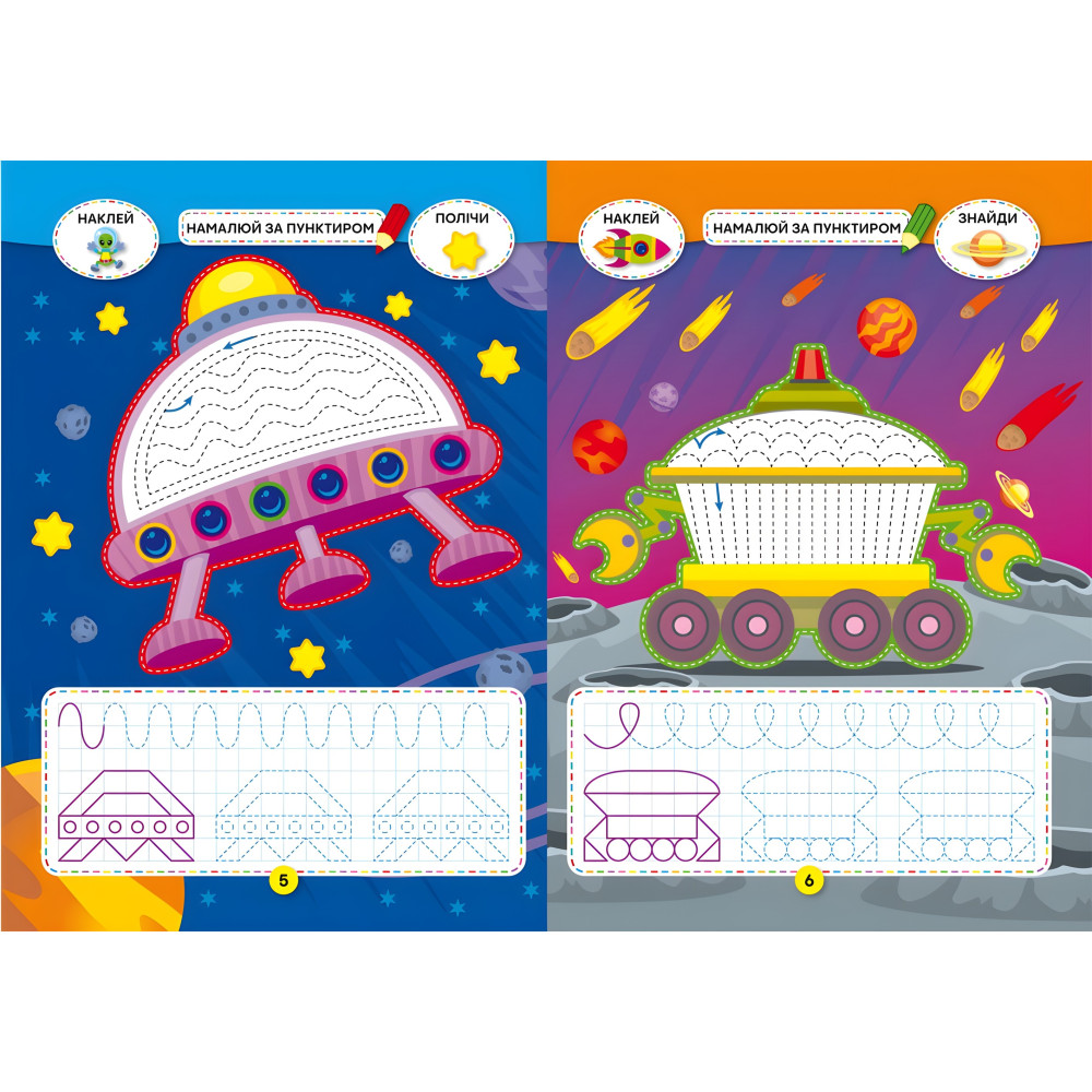 У цій книжці стільки цікавого й корисного! Проводячи лінії по пунктиру, готуйте руку дитини до письма. Вирізаючи та наклеюючи, розвивайте дрібну моторику. Відшукуючи сховані предмети, тренуйте спостережливість і пам’ять. Рахуючи картинки, опановуйте лічбу. Виконуючи завдання та граючись, виховуйте креативного малюка.