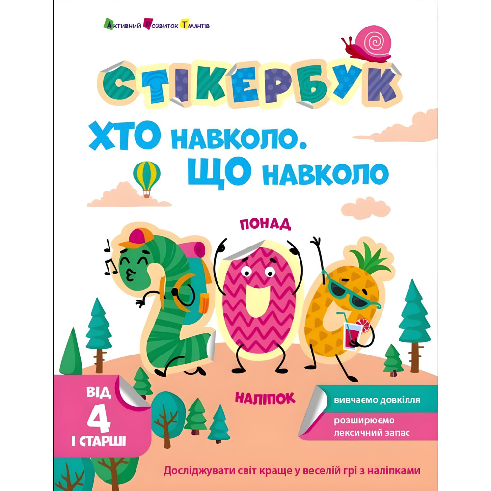 Досліджувати довкілля, називати правильно те, що бачимо, розвивати уважність, зосередженість та дрібну моторику краще у веселій грі з наліпками. "Хто навколо. Що навколо" - яскравий стікербук, де понад 200 наліпок. Зошит доволі насичений, щоб добре попрактикуватися, і такий простий, щоб дитині було зрозуміло і хотілося продовжувати! Ліпіть та вивчайте довкілля разом зі стікербуком «Хто навколо. Що навколо».