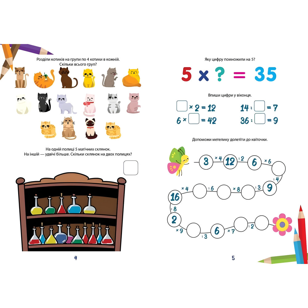 «Математичний інтенсив» спонукає вчитися легко і з задоволенням. На сторінках книги зібрані ігрові завдання: прості приклади на множення і ділення, лабіринти, шифри, які допоможуть встановлювати логічні зв'язки й розвинуть математичні навички.