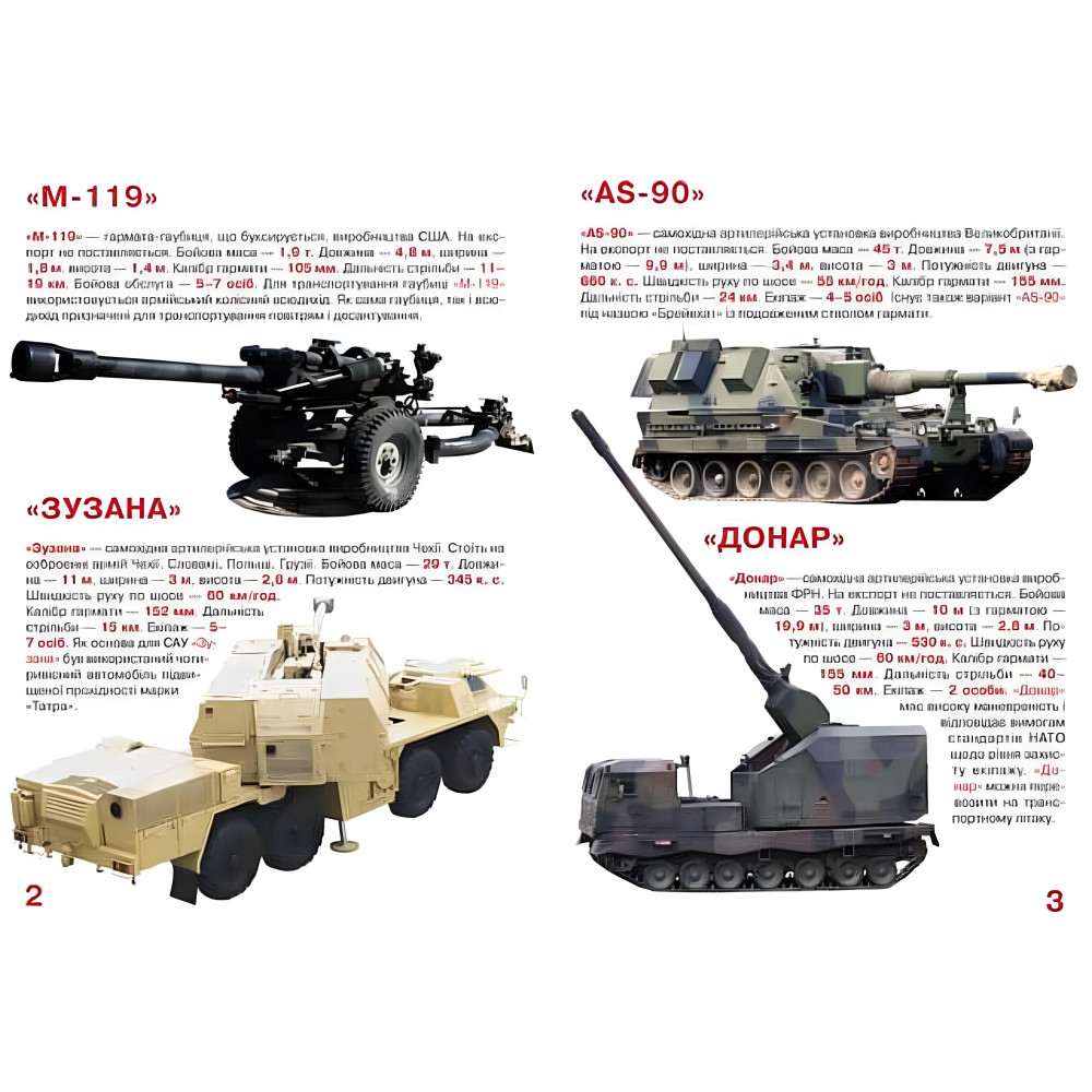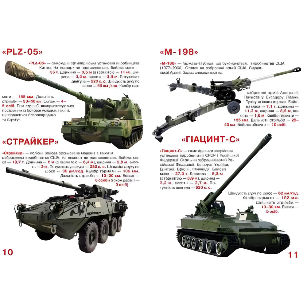 Навіть найбільш миролюбні держави не можуть обходитися без армій та озброєння, покликаного оберігати мирний труд. Ця книжка розкаже про артилерійське озброєння. Читачі дізнаються про можливості й призначення різних артилерійських систем. Видання доповнене чудовими фотоілюстраціями. Книжка адресована допитливим хлопчикам та дівчаткам, а також їхнім дбайливим батькам
