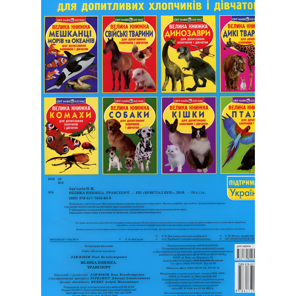Ми живемо у світі техніки. Транспорт займає особливе місце в нашому житті. Потяги, кораблі, автомобілі, літаки швидко переносять нас не ліше в інші міста, але навіть через материки та океани. У цій книжці з чудовими фотоілюстраціями популярно розповідається про різні види транспорту. Адресовано допитливим хлопчикам та дівчаткам, їхнім дбайливим батькам.