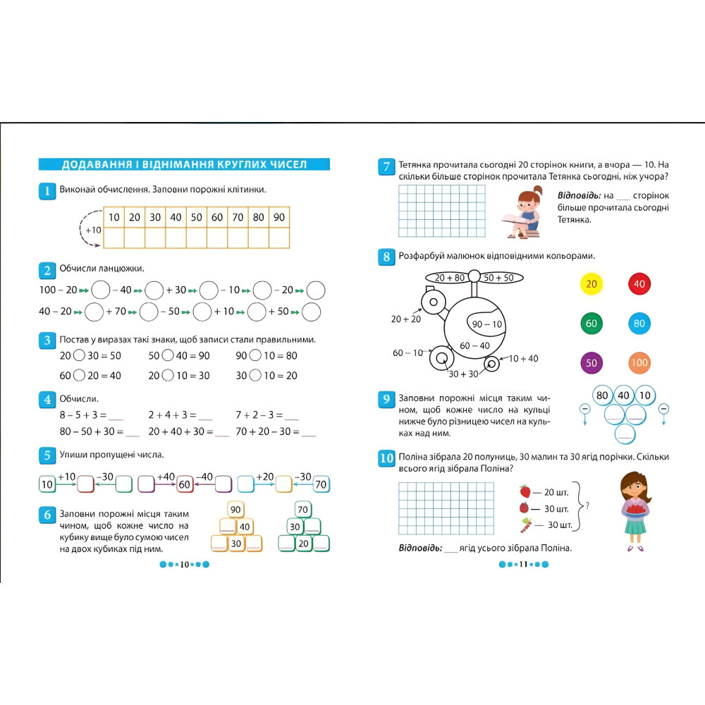 Зошит-практикум містить велику кількість вправ і задач, а також математичну гру. Посібник призначений для удосконалення обчислювальних навичок дитини, умінь розрізняти геометричні фігури за істотними ознаками, креслити, оперувати величинами й розв'язувати різні види задач.