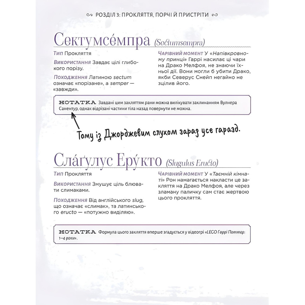 «Неофициальная полная Книга заклинаний мира Гарри Поттера» предлагает глубокий анализ более 240 заклинаний — она содержит все магические формулы, упомянутые в книгах, фильмах и видеоиграх, и не только их! Из каждого сообщения вы узнаете происхождение формулы заклинания, а также найдете памятный момент, в котором оно использовалось. А еще дополнительные заметки и движения палочкой необходимы для всех потенциальных колдунов и ведьм.