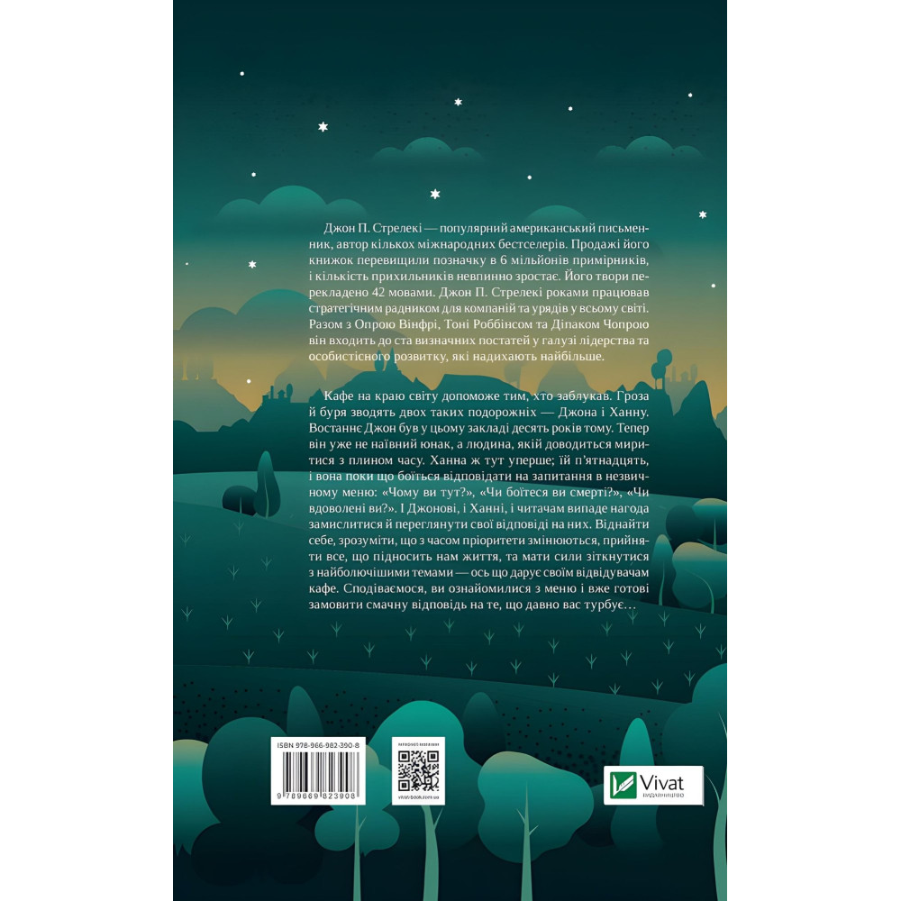 Уютная атмосфера кафе с вкусными блюдами, душистым чаем и комфортными диванчиками настраивает на размышления о весе. Короткие, но мощные разделы-притчи и истории из жизни написаны на легком и доступном языке и оставляют успокоение и легкость, а также мощную мотивацию двигаться вперед. В кафе Джона П. Стрелеки подают не просто пищу для размышлений, а настоящие деликатесы, и читателю обязательно захочется посетить снова.