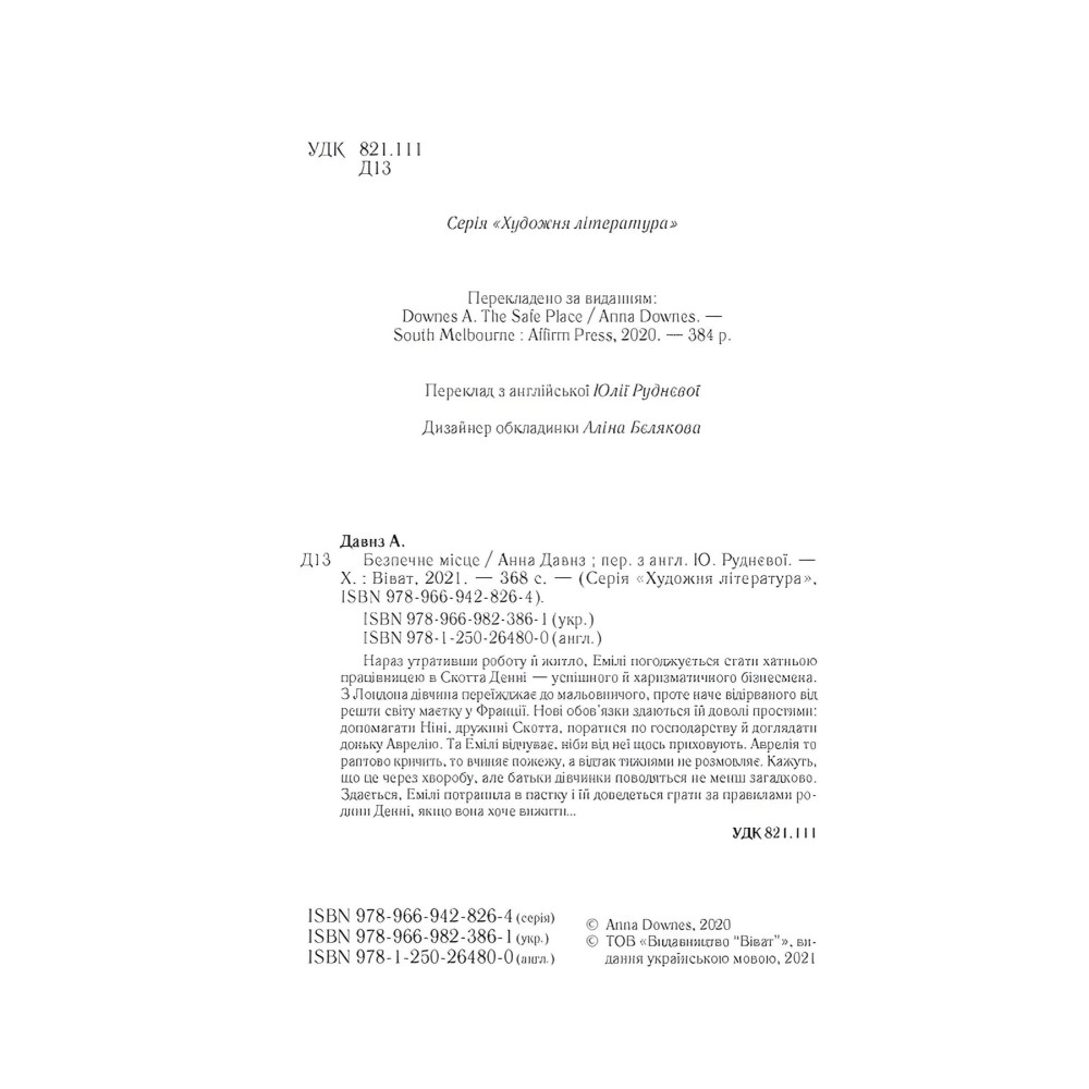 Анна Давнз — австралійська письменниця родом з Великої Британії, акторка театру й кіно. Навчалася акторської майстерності в Манчестерському університеті. Вона грала в телесеріалах EastEnders, Casualty, Holby City і Dalziel and Pascoe, а також у сценічній постановці The Dresser. У 2009 році облишила сцену й вирушила подорожувати зі своїм хлопцем-австралійцем. Деякий час жила у віддаленому французькому маєтку, де працювала економкою, — саме там і народився задум «Безпечного місця».