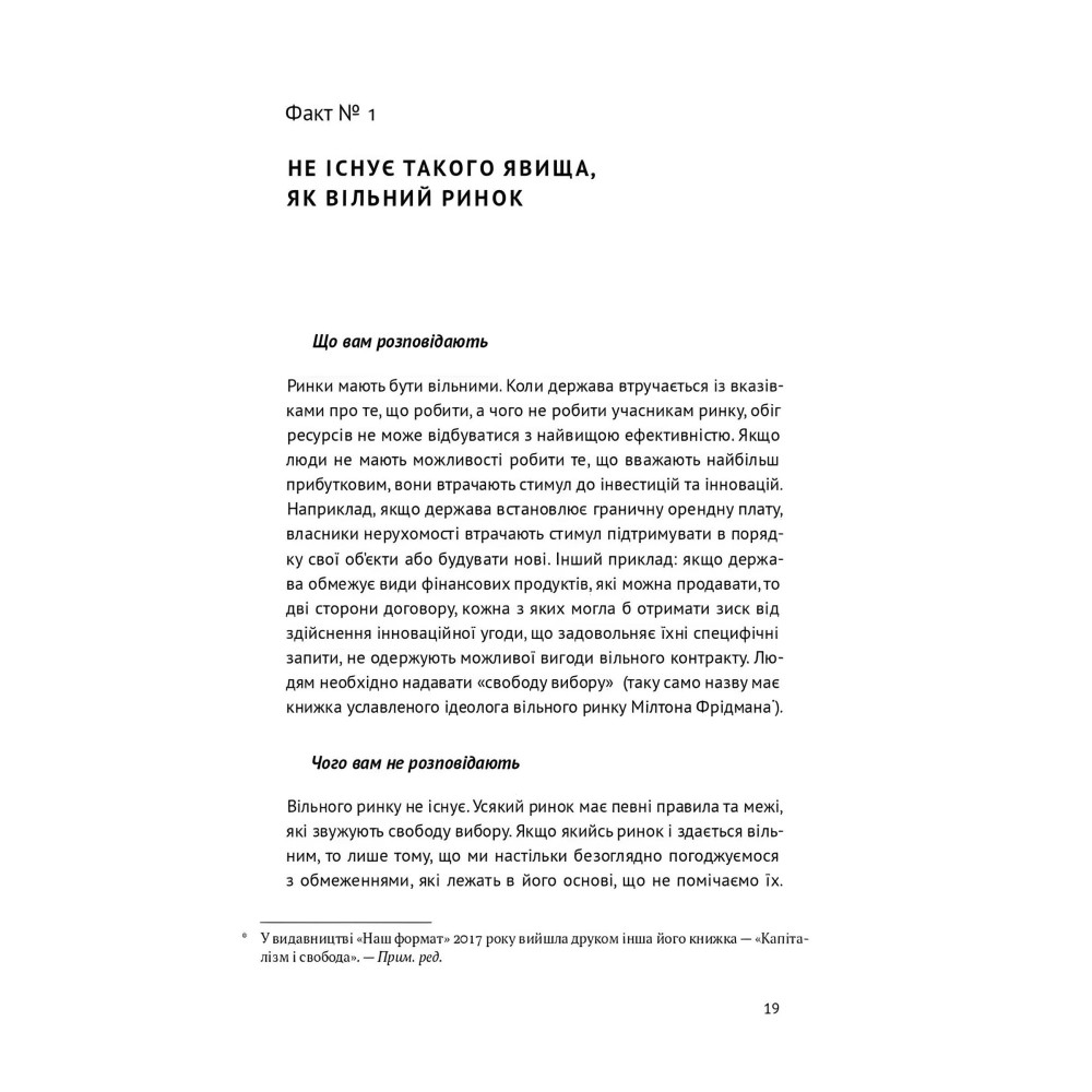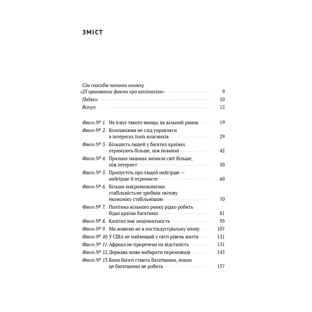 Капіталізм — погана економічна система, але всі інші ще гірші, стверджує економіст Ха-Юн Чанґ, перефразовуючи слова Вінстона Черчилля. Від того, чи готові люди (особливо ті, хто має владу) тверезо поглянути на проблеми цієї системи та вдосконалювати її, залежатиме економічне процвітання країн. Чи мають компанії враховувати інтереси лише своїх власників? Що допоможе бідним країнам стати багатими? І, зрештою, чому винахід пральної машинки змінив світ більше, ніж інтернет?