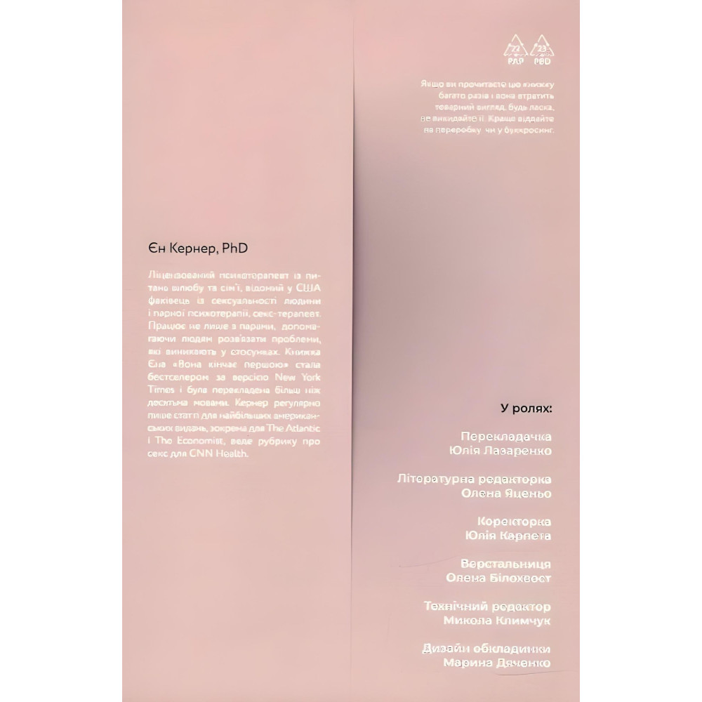 Кернер проаналізує ваш статевий сценарій — початок, середину та кінцівку любовного акту. І допоможе зрозуміти, що у ньому пішло не так та як створити умови, в яких кожен з вас зможе отримати задоволення і розкритися по-справжньому.