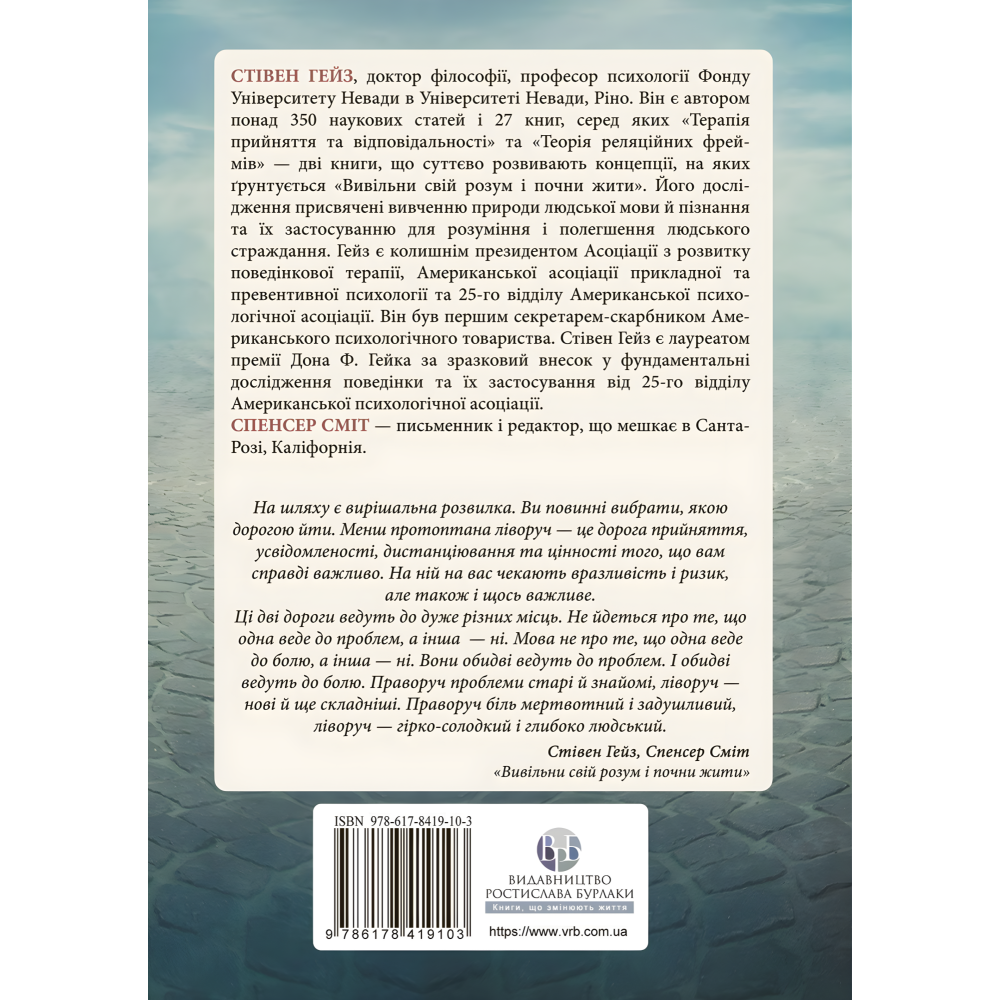 Стівен Гейс і Спенсер Сміт пропонують не рецепт миттєвого щастя, а новий спосіб жити поруч із болем — не борючись із ним, не тікаючи, а приймаючи його. Це — терапія прийняття та відповідальності (ACT). Вона не обіцяє, що все зникне. Вона навчає, як бути поруч із власним страхом, зневірою, сумнівами — і все одно йти вперед, до значущого, глибокого життя.