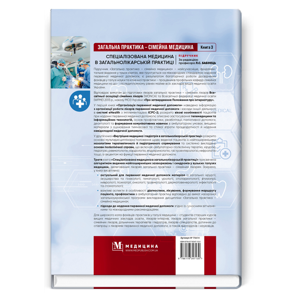 Підручник «Загальна практика — сімейна медицина» — найсучасніше, фундаментальне видання у трьох книгах, яке ґрунтується на міжнародних стандартах надання первинної медичної допомоги, є результатом багаторічної роботи досвідчених фахівців у галузі науки та клінічної практики — працівників профільних кафедр сімейної медицини на до-і післядипломному рівнях майже всіх закладів вищої медичної освіти України.